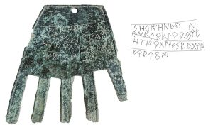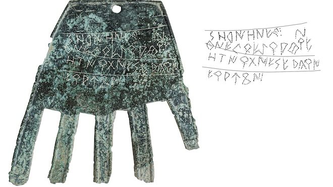 The Hand of Irulegi, which contains inscriptions that further support the connection between Basque and Iberian. Image from Wikimedia Commons.