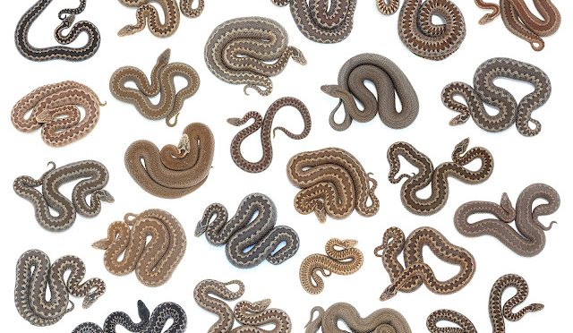 - The sugegorri is polymorphic, meaning it can take on various colors and patterns. Typically, males, which can be smaller than females, are white and blue-barred, with strong black markings. Females are brown or reddish. The belly is blue or black; sometimes with white spots. The tail is yellow, orange and red underneath. There are some very dark, almost black, specimens.