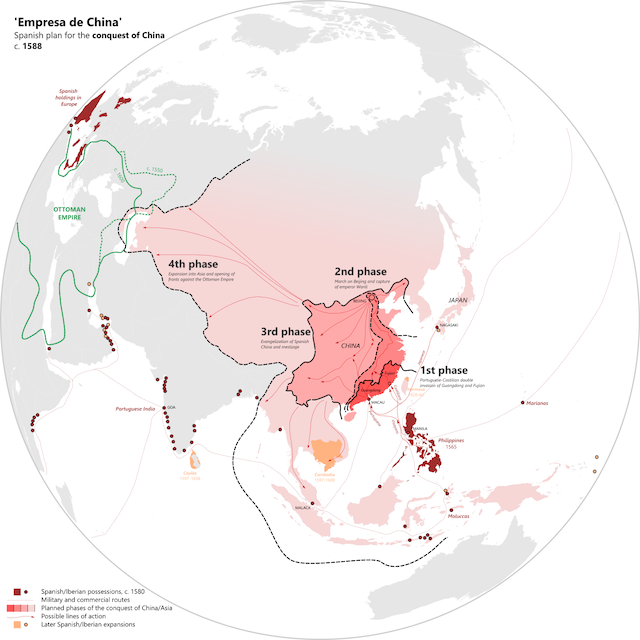 Primary sources: Los 12.000 vizcaínos que debían conquistar China para Felipe II by Javier Muñoz, El Correo; Empresa de China, Wikipedia; El plan más meticuloso y ambicioso de Felipe II para el Imperio Español: conquistar China con ayuda de Japón by Alejandro Alcolea, Xataka