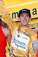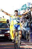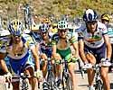 In the first kilometre of today's stage, Felix Cardenas got himself into a break that formed quickly and rolled away even quicker. The group comprised a few other good escapees: Constantino Zaballa (Saunier Duval), Volodimir Gustov (Fassa Bortolo), Tadej Valjavec (Phonak), José Luis Arrieta (Illes Balears) and Alberto Lopez De Munain (Euskaltel). It was surprising because the peloton was moving pretty fast at the time and at later stages set a fairly hectic rhythm. The gap grew and got up to about 8'30 at its peak. It was more than enough for Cardenas to take the points on the first two Cat. 1's, Piornal and the Honduras along with the Cat. 3 Cerro. These 32 points had him in the lead. The problem was that Liberty Seguros, who led the peloton behind, set a mighty rhythm up the narrow bare face of the Honduras. The road was barely a Humvee wide and the blue train of Saiz and Co. commenced to really turn the screws on Valverde, who suffered in the absolute tail of the peloton. For a while, the Liberty onslaught made it look impossible for the Cardenas group to survive, but by the top of the Honduras, Valverde had reinserted himself in a more respectable position fixed to the rear wheel of Heras. Over the next climb, the Cat. 3 Cerro, Cardenas upped the pace. It wasn't the easiest Cat. 3 around as Caruso led the Liberty machine climbing in the little ring. This time though Saiz gave the order to conserve forces and instead of spending more than one of his riders, allowed the young Italian to keep the rhythm high but not blistering. The change of pace by Liberty gave the escapees some more room to move and another chance of survival. Cardenas achieved his third object of the day. The points were not huge, only 6 for crossing a Cat.3 first, but every little bit helped.